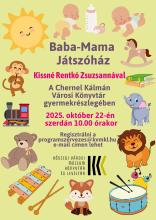 2025. október 22-én szerdán délelőtt 10.00 órától Kissné Rentkó Zsuzsanna várja sok szeretettel a legkisebbeket foglalkozására, BABA-MAMA JÁTSZÓHÁZBA!