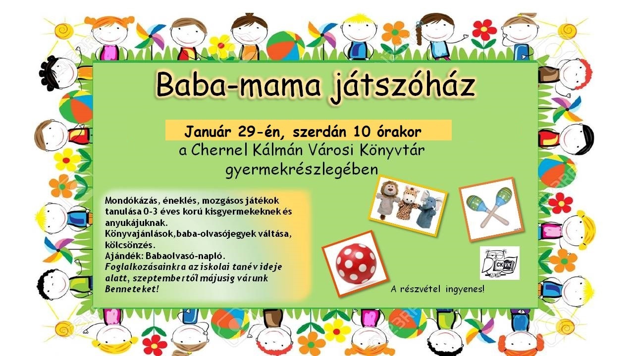Az év első alkalmára január 29-én, szerdán 10.00 órára szeretettel várjuk a babákat, a mamákat és más kísérőket a gyermekrészlegbe!