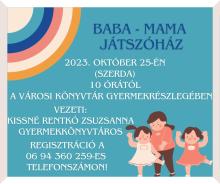 2023.10.25-én (szerda) 10 órától a Városi Könyvtár gyermekrészlegében. A foglalkozást vezeti: Kissné Rentkó Zsuzsanna. Regisztráció a 06 94 360 259-es telefonszámon.