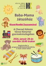 2026. évi első Baba-Mama játszóház Kissné Rentkó Zsuzsannával 2026. január 28-án szerdán 10.00 órától lesz gyermekrészlegünkben! Mindenkit szeretettel várunk!