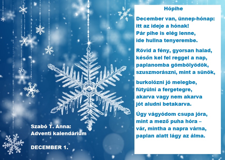 Szabó T. Anna: Adventi kalendárium Csatolmányok December 1.192.56 KB December 2.237.55 KB December 3.302.42 KB