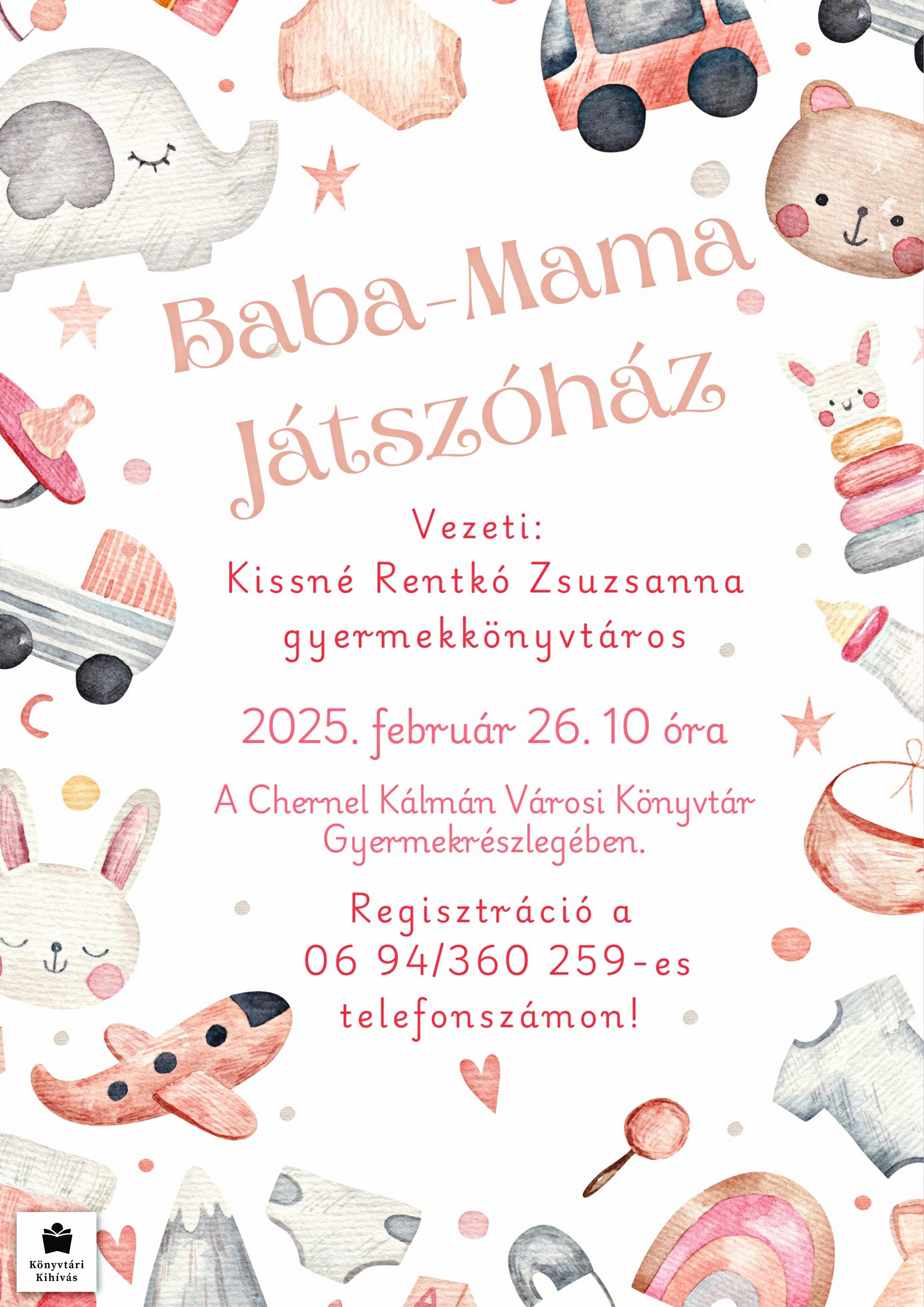 2025. február 26-án szerdán, 10.00 órától könyvtárunk második emeleti gyermekrészlegében. A foglalkozást Kissné Rentkó Zsuzsanna vezeti. Regisztrálni a 94/360-259-es telefonszámon lehet.Mindenkit sok szeretettel várunk!
