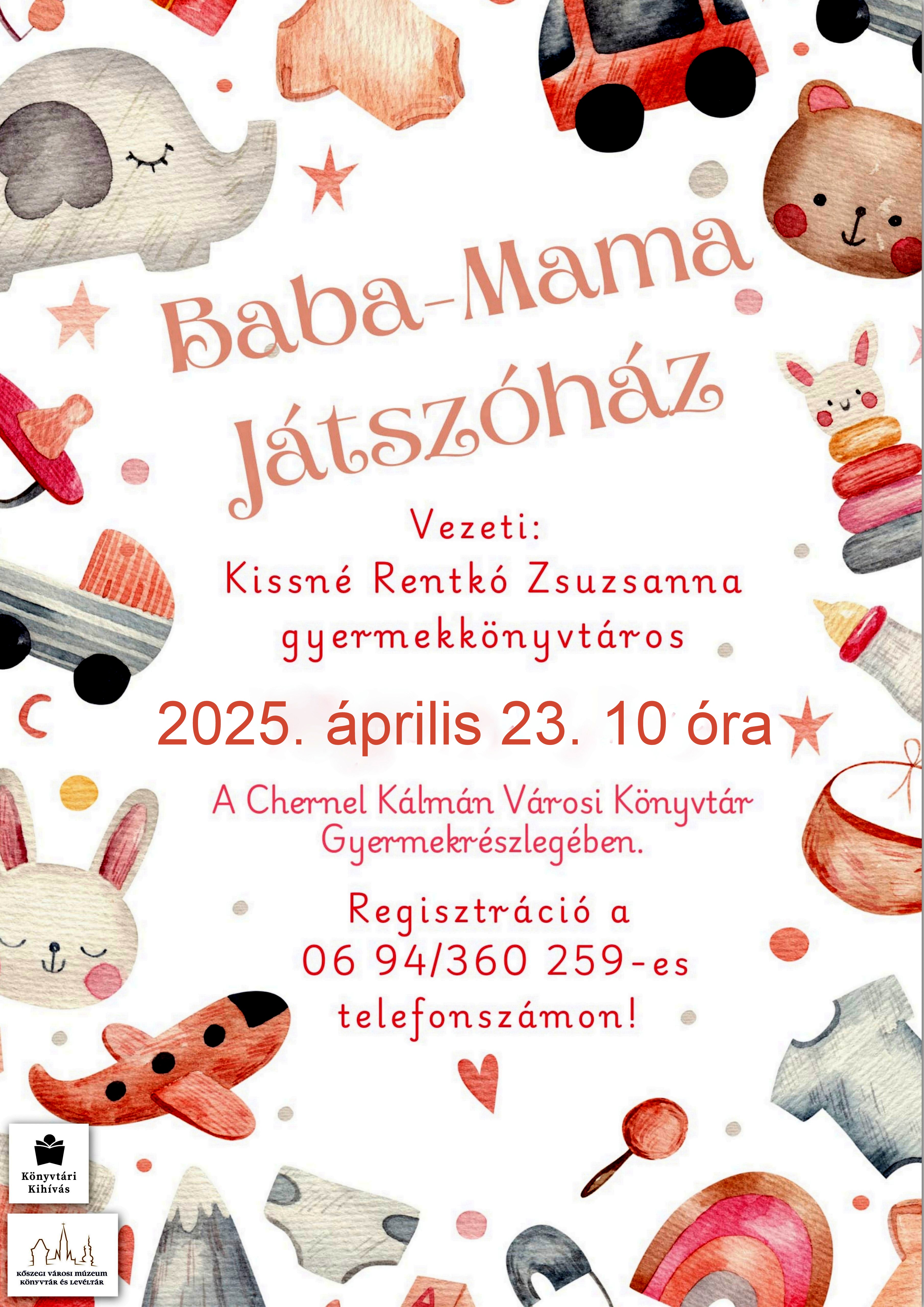 2025. április 23-án szerdán, 10.00 órától könyvtárunk második emeleti gyermekrészlegében. A foglalkozást Kissné Rentkó Zsuzsanna vezeti. Regisztrálni a 96/360-259-es telefonszámon vagy a gyermekkonyvtar@kvmkl.hu e-mail címen lehet Szabó Andrea gyermekkönyvtáros kolléganőnknél.Mindenkit sok szeretettel várunk!