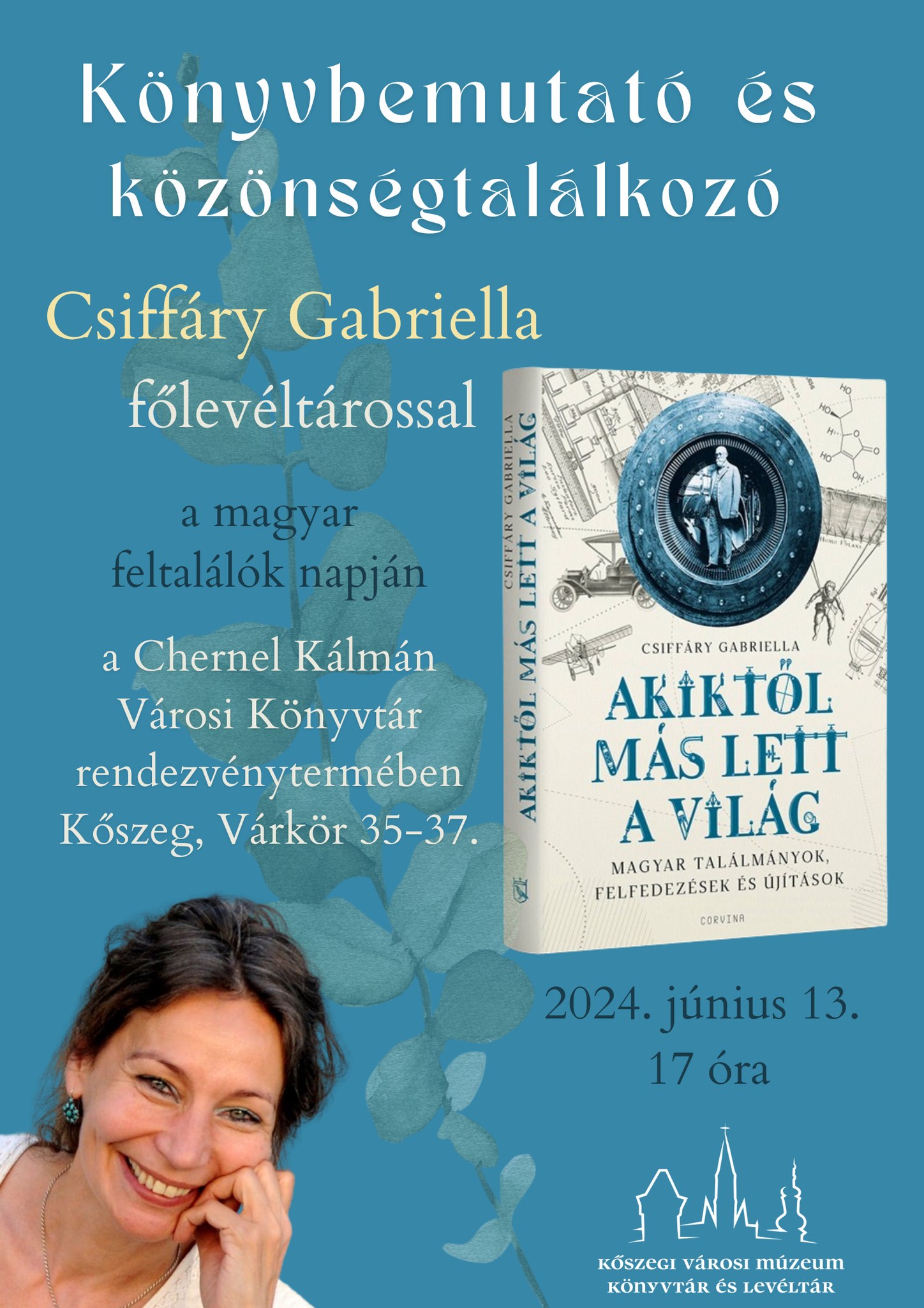 Sok szeretettel várunk minden kedves érdeklődőt a 95. Ünnepi Könyvhét keretében 2024. június 13-án, csütörtökön 17 órától Csiffáry Gabriella főlevéltáros (Budapest Főváros Levéltára) Akiktől más lett a világ című könyvének bemutatójára!