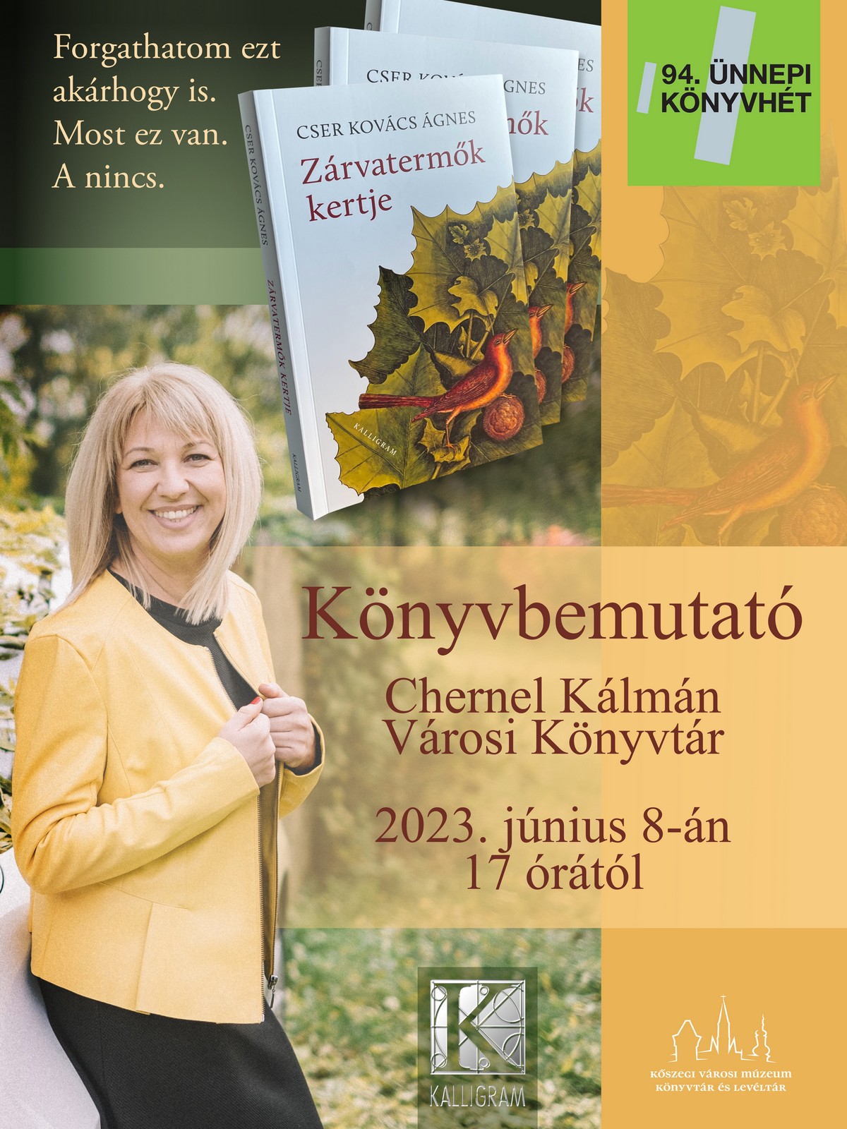 Szeretettel meghívjuk Önöket Cser Kovács Ágnes 2023.06.08-án 17:00 órakor kezdődő író-olvasó találkozójára a Chernel Kálmán Városi Könyvtárba.