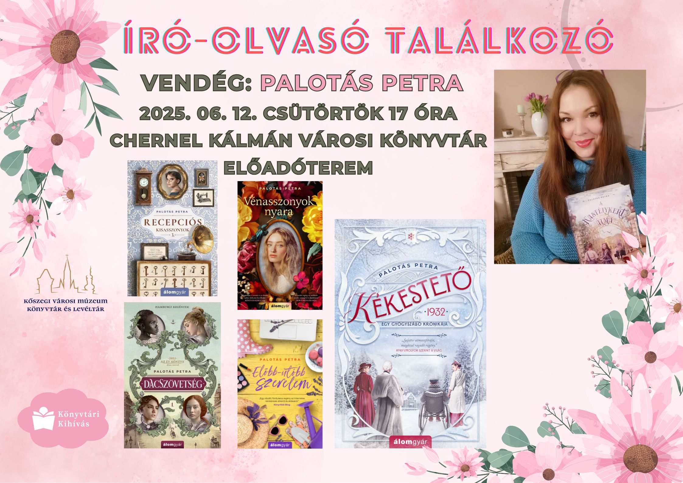 Sok szeretettel várunk minden Palotás Petra novellákat, regényeket kedvelőt, érdeklődőt, látogatót 2025. június 12-én csütörtökön 17 órára író-olvasó találkozóra rendezvénytermünkbe!