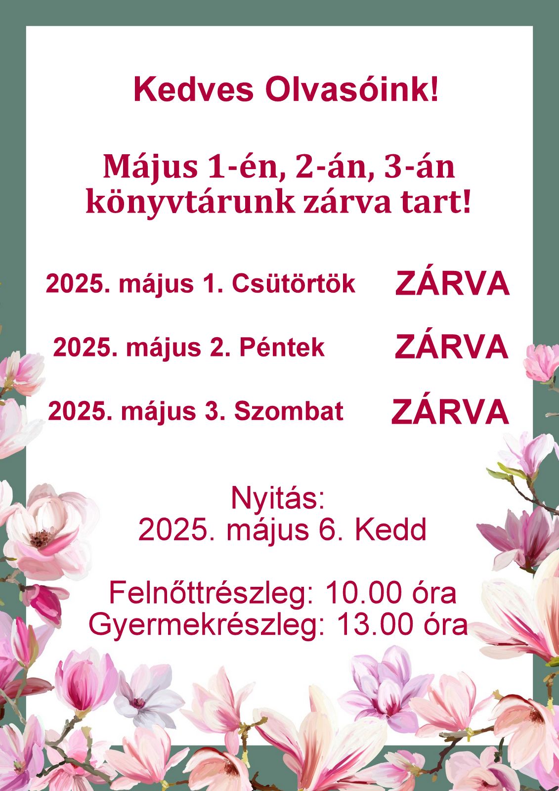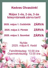 2025. április 29-én kedden és április 30-án szerdán könyvtárunk változatlan nyitvatartással várja Önöket!