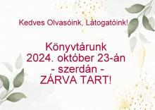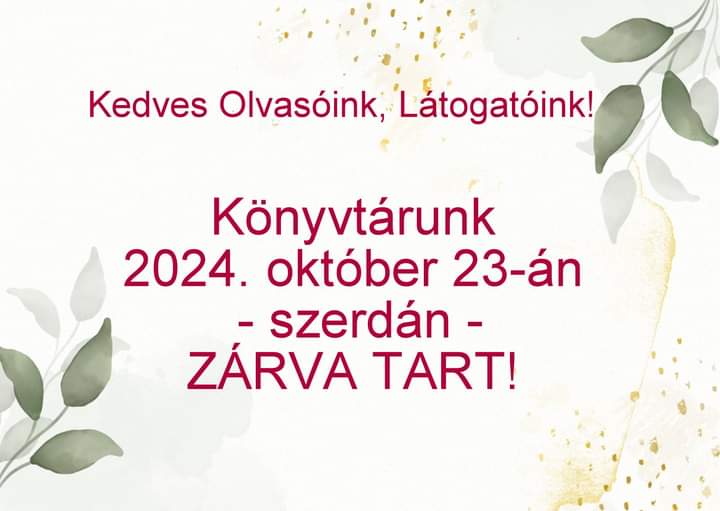 Szerdán, - október 23-án a Nemzeti Ünnepen - könyvtárunk zárva tart!