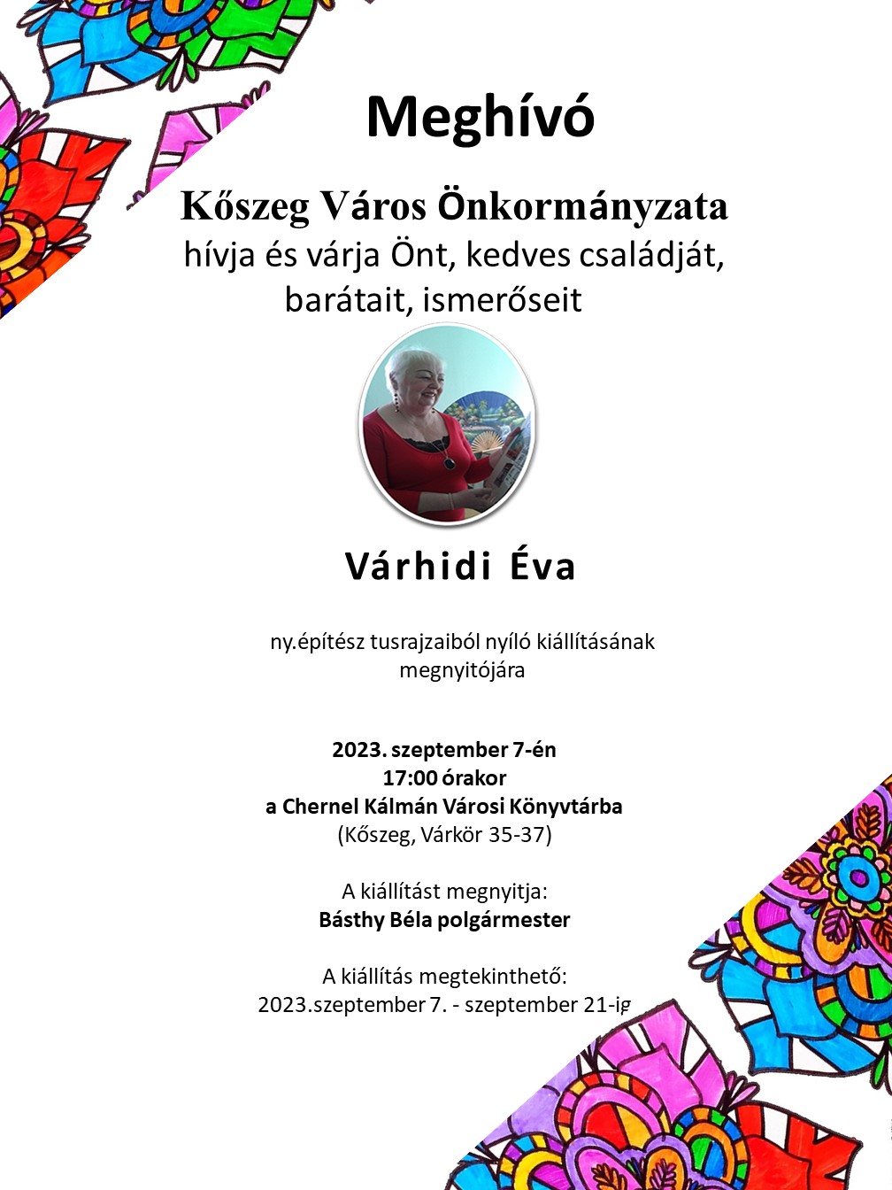 2023. szeptember 7-én 17:00 órakor a Chernel Kálmán Városi Könyvtárba (Kőszeg, Várkör 35-37.).