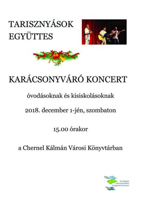 2018 december 1-jén, 15 órakor a TARISZNYÁSOK együttes ad koncertet óvodásoknak és kisiskolásoknak.