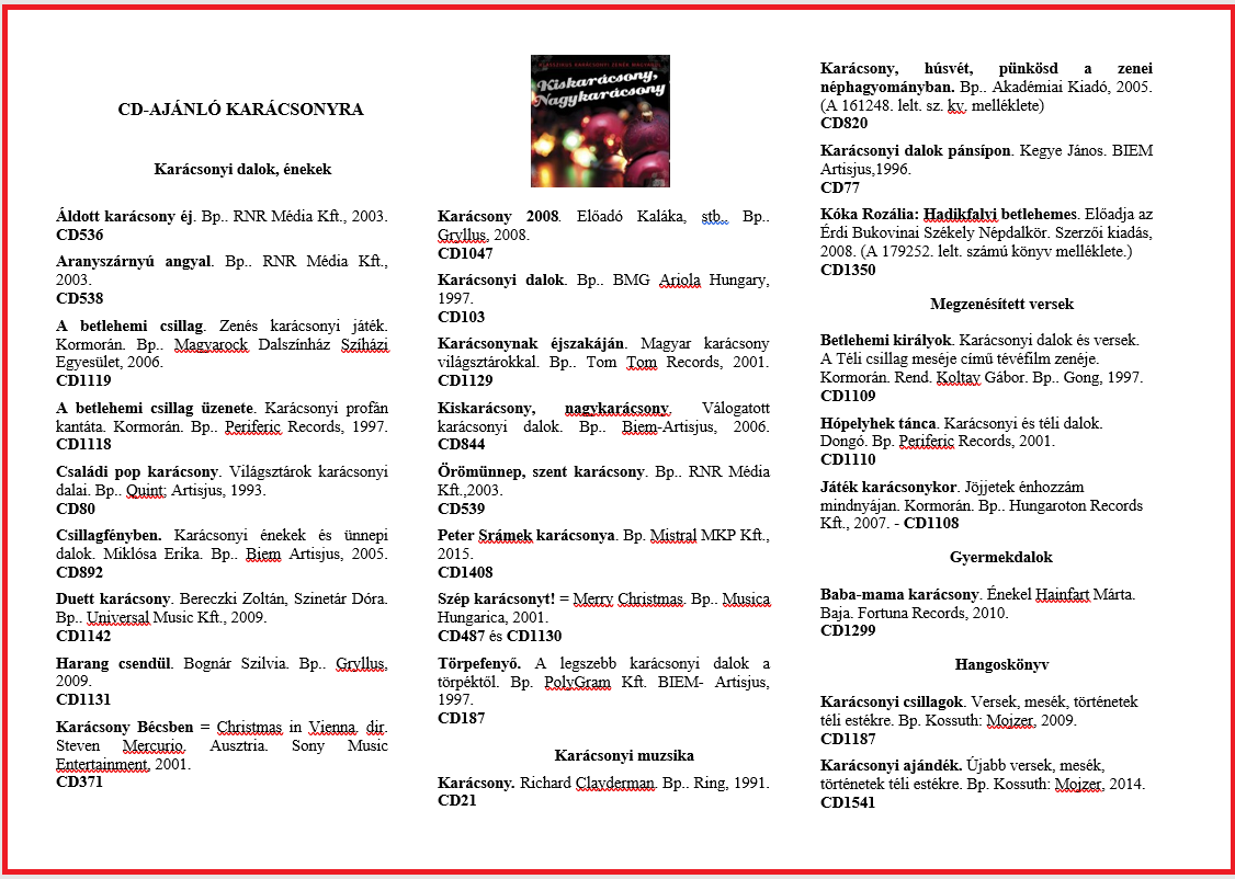 Kölcsönözzön CD-n karácsonyi dalokat, zenéket, verseket, történeteket!
